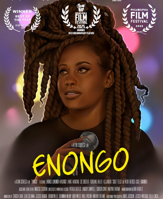 “Enongo” is an award-winning, feature-length, animation-documentary hybrid and the inspiring story of rapper/producer/Ph.D. candidate, Enongo Lumumba-Kasongo, a.k.a., Sammus. With her autobiographical and afrofuturism-inspired music, Enongo tackles various subjects including (but certainly not limited to) mental health, growing up, and relationships. Through a combination of actuality and animation, “Enongo” tells a universally-relevant, intimate, empowering story of identity, artistic creation, and survival. Notably, “Enongo” is the first feature-length film of any genre in history to have an all-Black-women animation team.